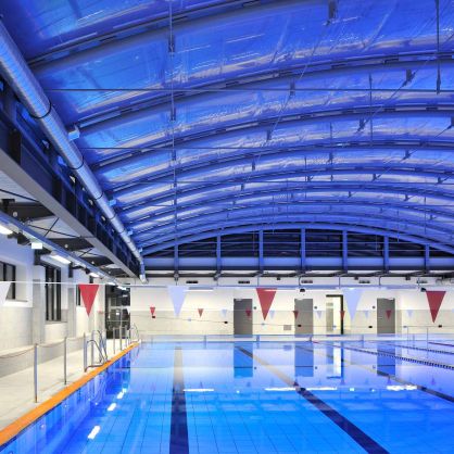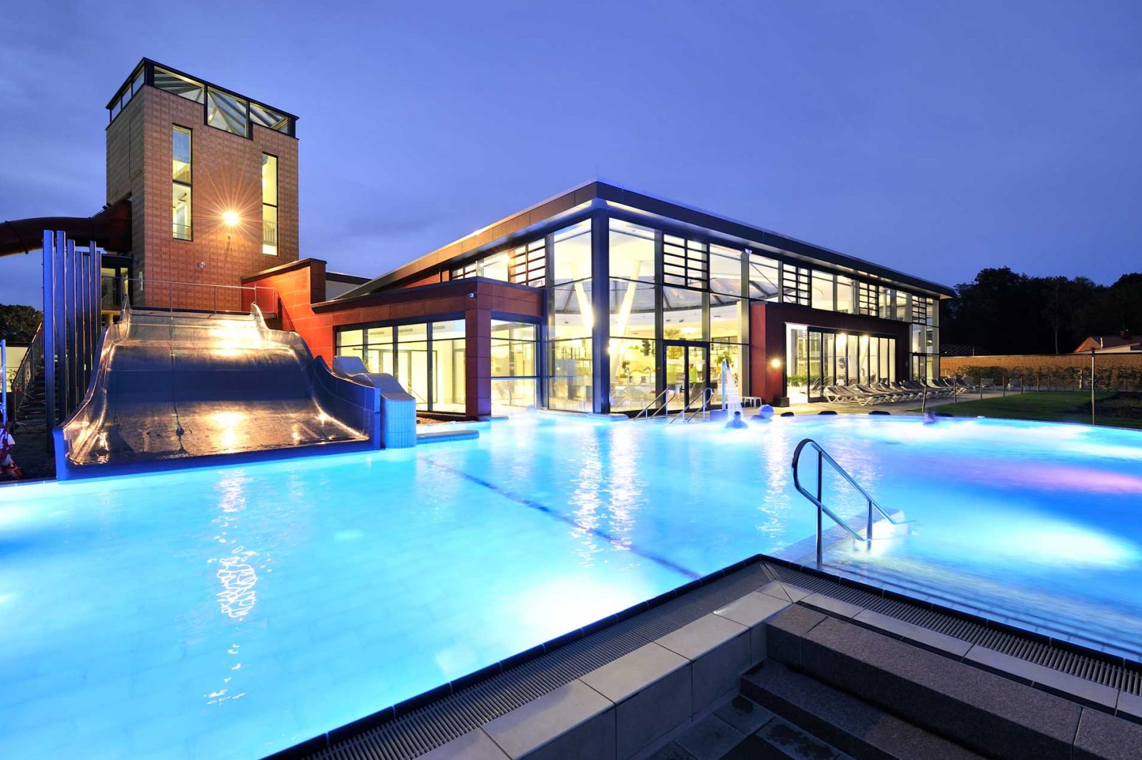 Die neue Freizeitanlage ist auf die Bedürfnisse breitgefächerter Bevölkerungsgruppen zugeschnitten. Die Anlage ermöglicht den Vereins- und Schulsport, bietet ein Freizeit- und Erlebnisbad mit attraktiven Spiel- und Aufenthaltsflächen. Großzügige öffenbare Fassaden ermöglichen einen fließenden Übergang zwischen dem Innenbereich und dem Außenraum. Weitgespannte Foliendächer geben den Blick in den Himmel frei. Die Rutschenanlage mit Black-Hole-Röhrenrutsche (76 m Länge) und das Außenwarmlandebecken runden das Badeprogramm ab.