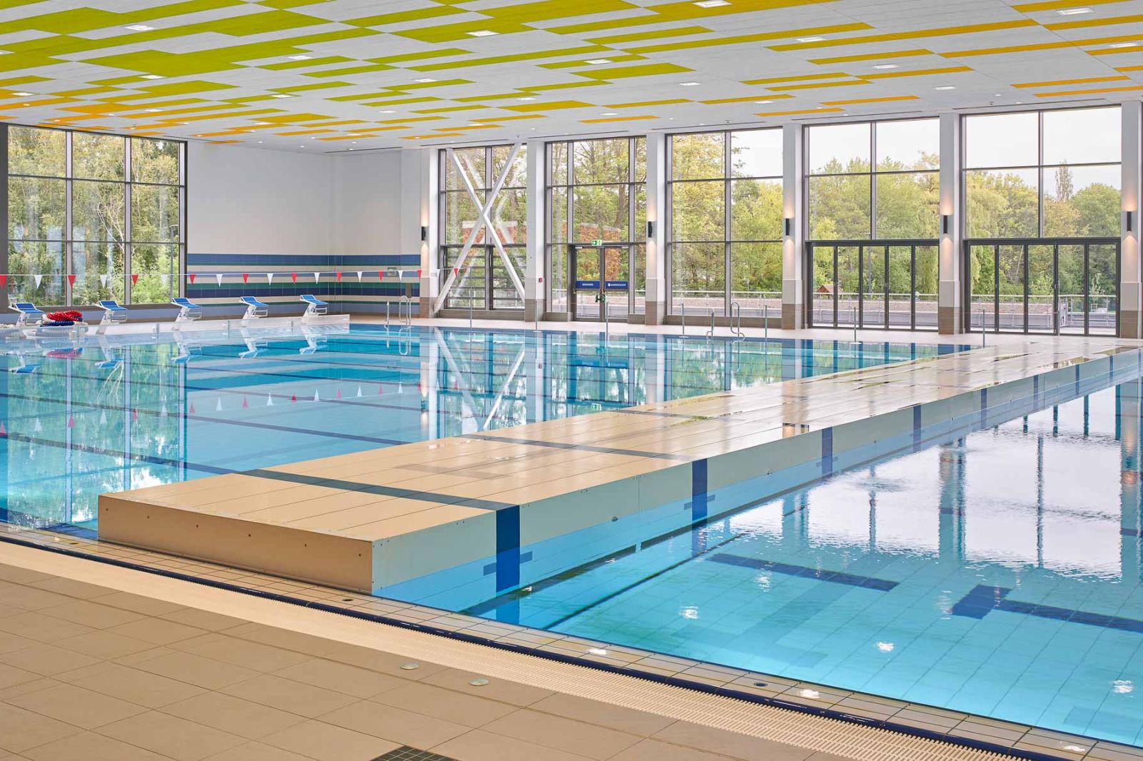 - Hallenbad: ca. 1.350 m², Freibad: ca. 1.030 m²