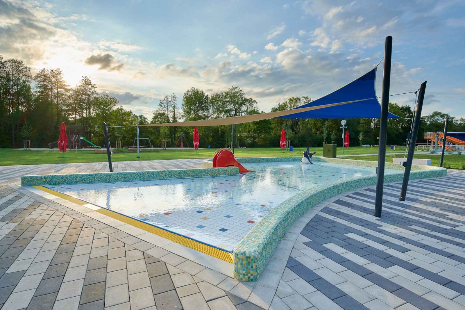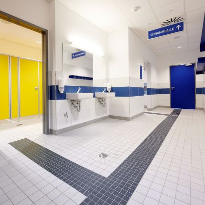 - Hallenbad: ca. 4.900 m² (neu), Freibad: ca. 1.300 m² (saniert)