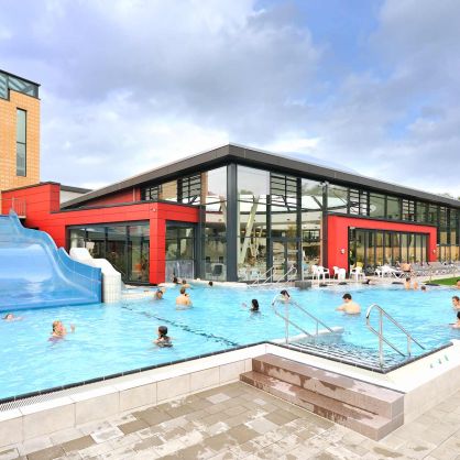 Die neue Freizeitanlage ist auf die Bedürfnisse breitgefächerter Bevölkerungsgruppen zugeschnitten. Die Anlage ermöglicht den Vereins- und Schulsport, bietet ein Freizeit- und Erlebnisbad mit attraktiven Spiel- und Aufenthaltsflächen. Großzügige öffenbare Fassaden ermöglichen einen fließenden Übergang zwischen dem Innenbereich und dem Außenraum. Weitgespannte Foliendächer geben den Blick in den Himmel frei. Die Rutschenanlage mit Black-Hole-Röhrenrutsche (76 m Länge) und das Außenwarmlandebecken runden das Badeprogramm ab.