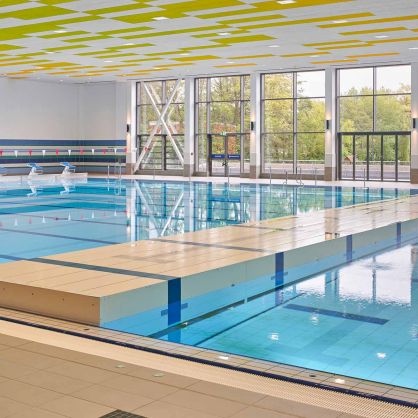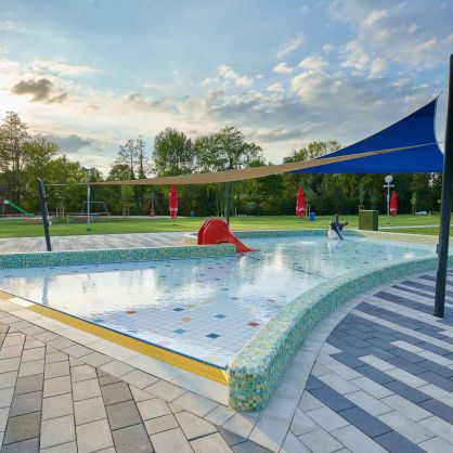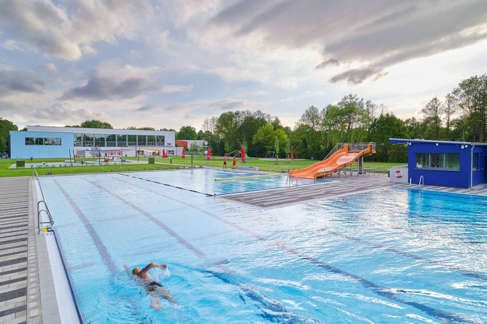 - Hallenbad: ca. 4.900 m² (neu), Freibad: ca. 1.300 m² (saniert)